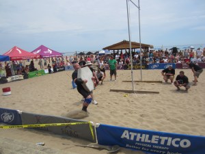 Anyways, onto the competition. We missed the first two events and came just as the Husafell event got underway. We knew how tough this was from recent experience but add the fact that these guys are walking in the sand and that’s just nuts. The crowd did a great job cheering on the competitors and NAS State Chair and event organizer Sam McMahon made sure these guys went as far as they could possibly go with his constant chatter at them with each lap. It was very cool.