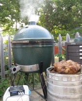 Bigg also has a device to check the meat from his computer at work but it’s not in use today since I’m here to check it (that’s trust, eh?) We’ll let you know how it turns out. It’s been going all night and will rest most of today in preparation for it’s debut at a picnic/boat ride this evening to enjoy the fireworks from Lake Michigan.
