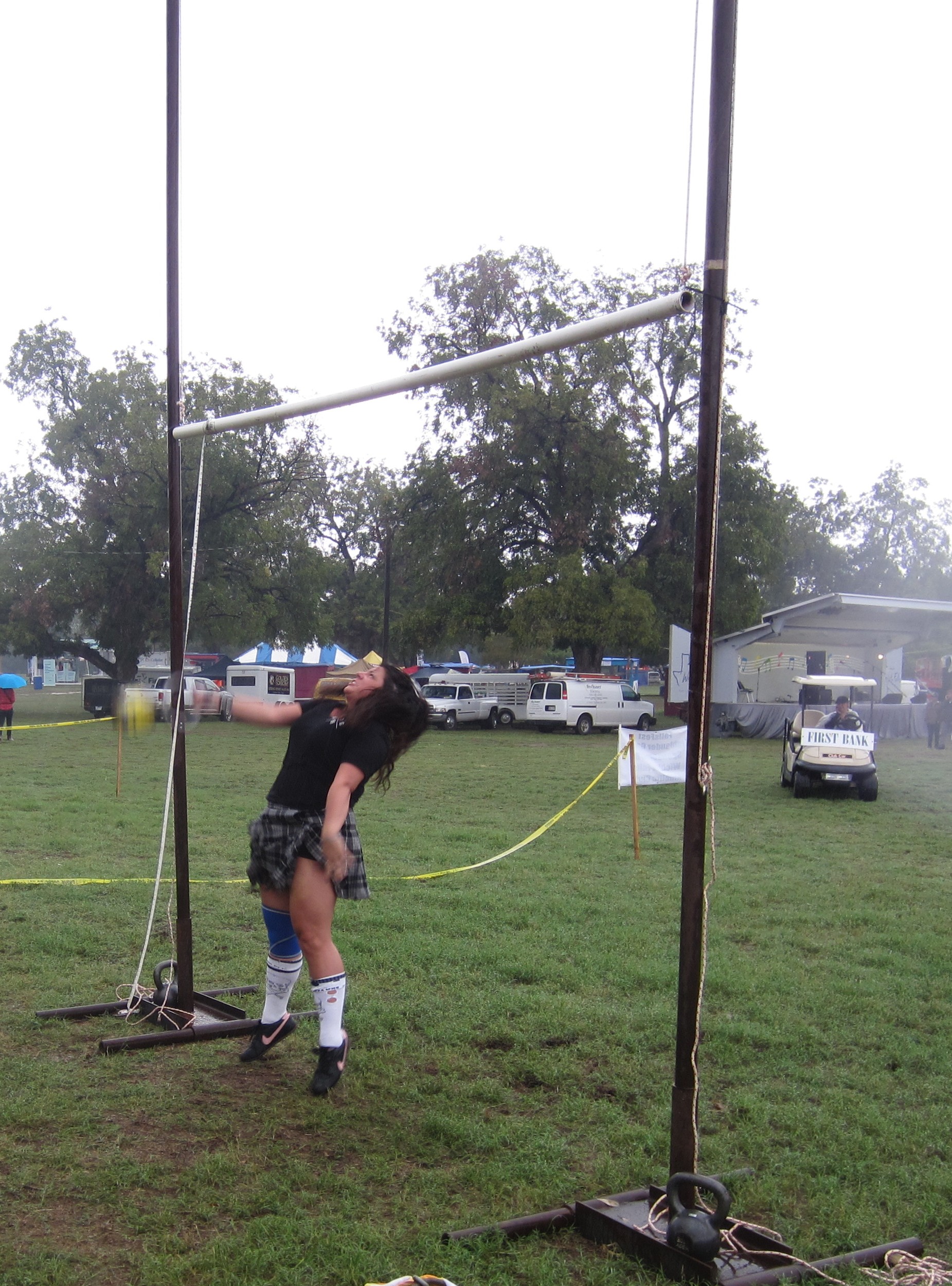 The event: The second annual Falls Fest Highlander in Wichita Falls, TX. As you know, we were supposed to be in Vegas while Bigg (hopefully) kicked arse at the America’s Strongest Man contest. But then his bicep blew and I thought to myself, “Well, self, I wonder if we can hit the Highlander instead?” He said yes, and I started training harder for some of the events.