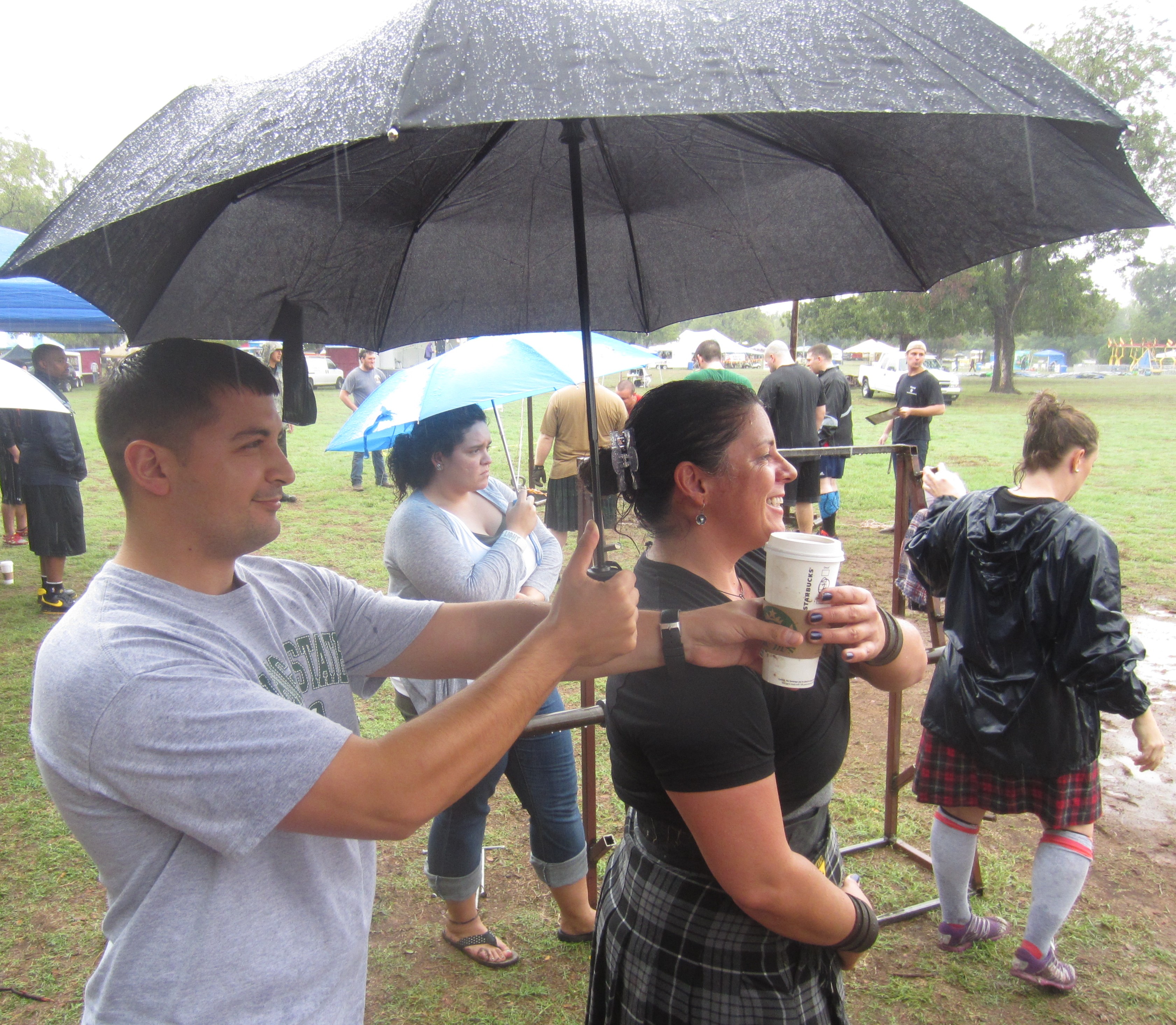 THEN, we went over to the LWFD (Light Weight for Distance.) Tammy’s first attempt was something like 49 feet. Holy shite. SRSLY? It was awesome. My last attempt went a little more than 38′ and I’ll take it. I threw 40 last month at the Scottish games and that was a PR. 38…in the rain? Happy.