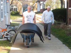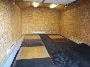 We had a few firsts last weekend at tosabarbell. With the help of Swede and Chris (since Bigg is a wing down and unable to work the heavy loads for a bit) we got the flooring and the platforms in. Look how happy Swede looks…