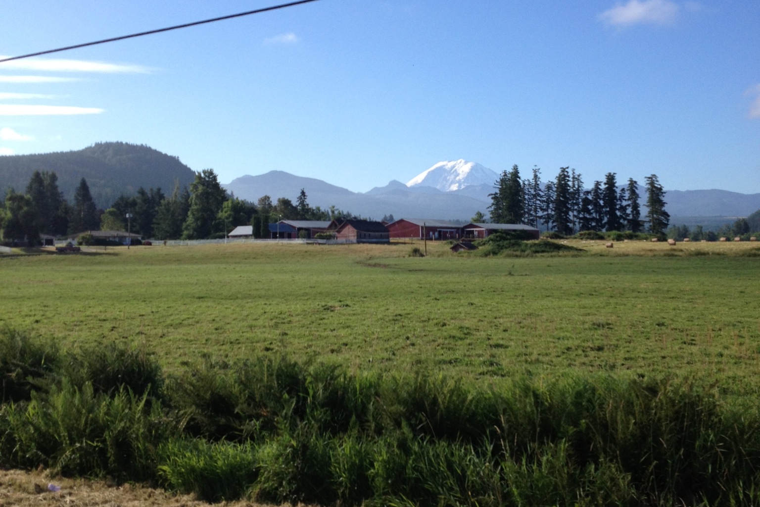 We headed closer to Enumclaw Friday night since both Bigg and I were on deck to volunteer while the big dog’s threw on Saturday. I will say that helping out on Saturday was tons of fun and being able to watch the technique of so many of the World’s best was a treat, but it wore me out. So much so that I bailed out of the Clawbeque party that we were going to at the end of the day. I was completely fried. I’ll have to look at that for next year if I’m lucky to go again. As much as I want to be helpful and take it all in, I need to remember to keep my limits in mind. OH! Our view on the way to the field?