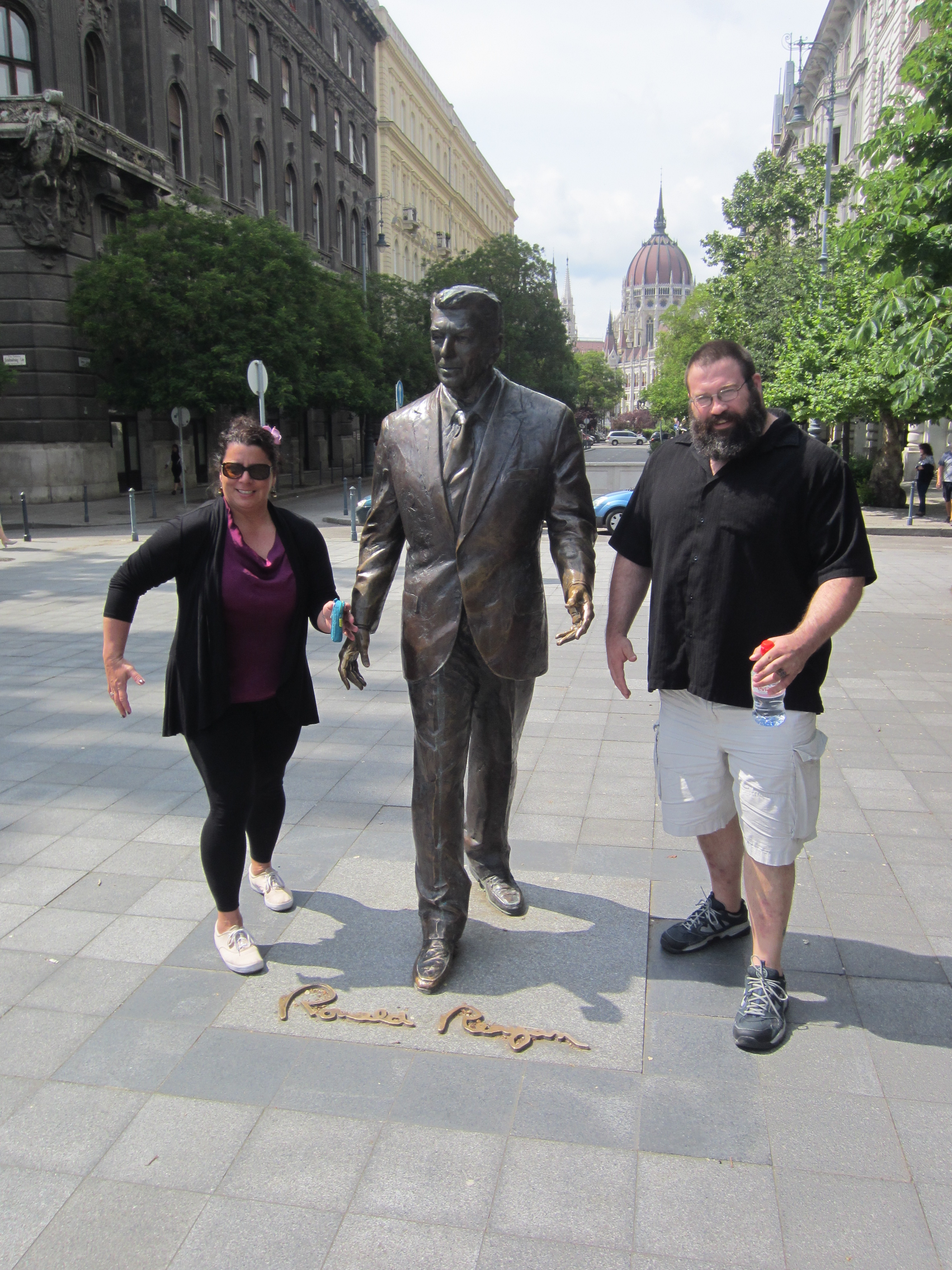 Later that day, we were walking around Hungarian Parliament and came across the statue of Ronald Reagan. Well sure we needed a picture so decided to look as if we were talking a walk with him. It was all fun and good when suddenly, an old Hungarian man who had been watching and listening to us came up and pointed to the statue and said, “He gave us freedom. He freed us.”