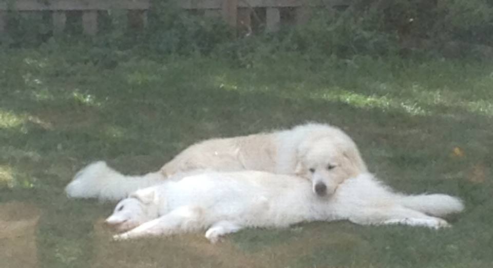 Of course, I’ve always been partial to big dogs so we hung out around the big rings. That is where we first met Lynn & Connie, breeders of the Kuvasz. The what? I’d never heard of the breed but these Hungarian big white dogs were gorgeous and when they were done showing, we asked if we could talk. The dog Lynn was holding was perfect head height to the, then, little Oz man who at that time still liked to suck his fingers Hook’em Horns style. While we were talking I noticed that Oz would take his fingers out of his mouth, Annie (the, then, still almost puppy Lynn was with) would lick them and then look at him when she was done. Oz would then proceed to put them back in his mouth and start the whole process over. Sooooooo, Oz is a dog person I guess. (I don’t want to hear how gross that is. I agree but not the point.) Lynn watched this happen and said, ‘Sure, we can talk.’ (I later understood that if I’d reacted differently or Oz would pound on Annie’s head toddler style, we wouldn’t have talked;) Heh.