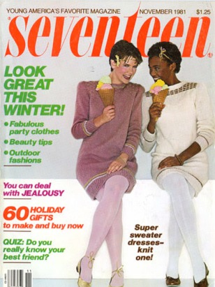 My mom bought me a subscription to Seventeen magazine. Before that the only magazine I’d ever read was Sports Illustrated. I think she was trying to fem me up. While I was a tomboy, I still curled my feathered bangs and wore too much eye make up so I didn’t really think I needed femming up. But a style change was probably necessary since I ran around in sneakers and sweats most of the time (so nothing’s really changed.) Suddenly though, I noticed that the ideal body type (according to Seventeen magazine) was tall and thin. Two things I never was nor ever will be.