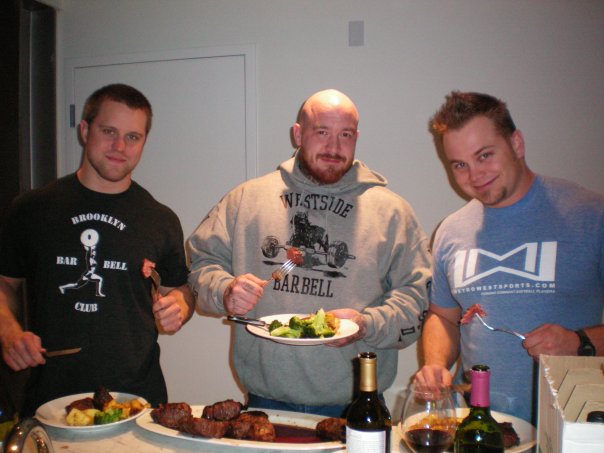 When we were in Huntington Beach for a barbell cert, we popped over to John Welbourn’s house (pre-twins) for dinner and he just got a shipment in of grassfed beef. So we ate it. I think all of it. Welbourn grilled, the wine was never ending and eventually after falling asleep at the table I just went and laid down on the couch where Justin was already sleeping. It was a grand evening.
