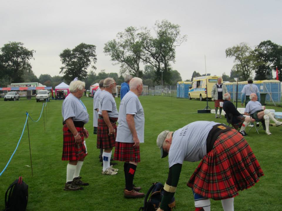 The 60, 70, and 80’s age groups getting prepared to throw a 42# WOB in Scotland. Watching these men was amazing. Their competitive spirit is just as strong as all of ours and they’d get just as pissed with that Caber wouldn’t turn for them.